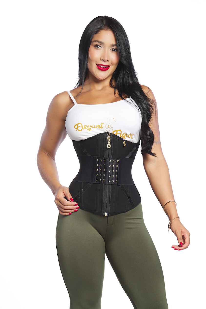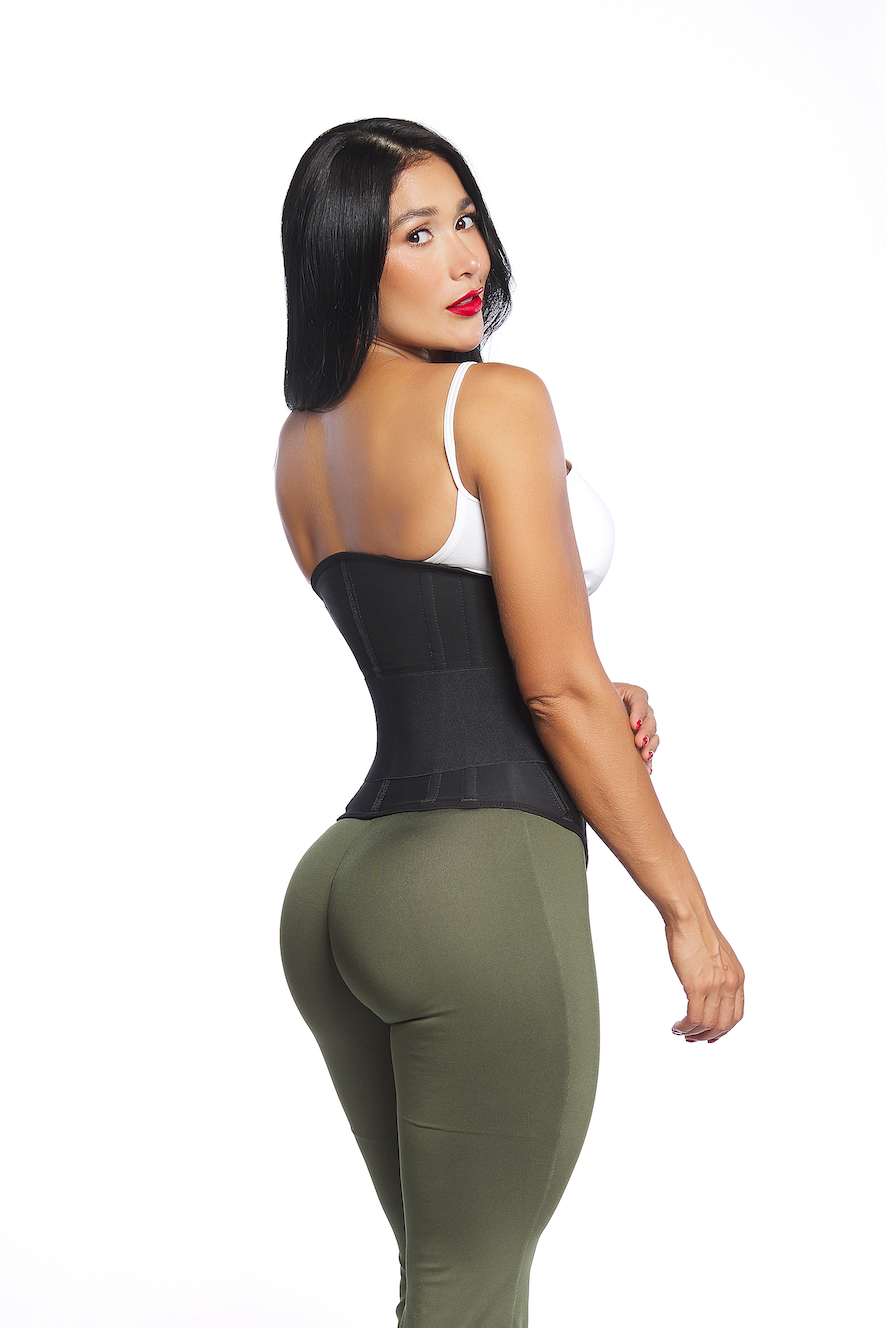 Cinturilla de compresión extrema diseñada para moldeado avanzado. Cuenta con 15 varillas para máxima estructura y soporte. Fabricada con dos capas de powernet: la primera capa incluye 3 filas de broches para un ajuste regulable, mientras que la segunda capa cuenta con cierre frontal de cremallera. Incluye una banda elástica externa con 6 filas de broches colocada encima para una mayor reducción de cintura y compresión intensificada. Diseñada para personas que buscan resultados de moldeado dramáticos, incluyendo aquellas con experiencia previa en waist training o postextracción de costillas. Forro interno de algodón para mayor comodidad. Espalda alta para cobertura de la grasa en la espalda y parte frontal extendida para control del abdomen bajo. Él dije no viene reforzado para que pueda removerse fácilmente si la clienta lo desea. Se recomienda subir una talla para clientas sin experiencia con fajas de compresión extrema.