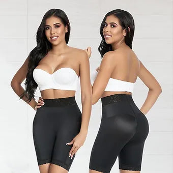 SHORT ALTO LEVANTA POMPIS CON CONTROL ABDOMINAL Y LATEX PARA SUDAR Y QUEMA GRASA