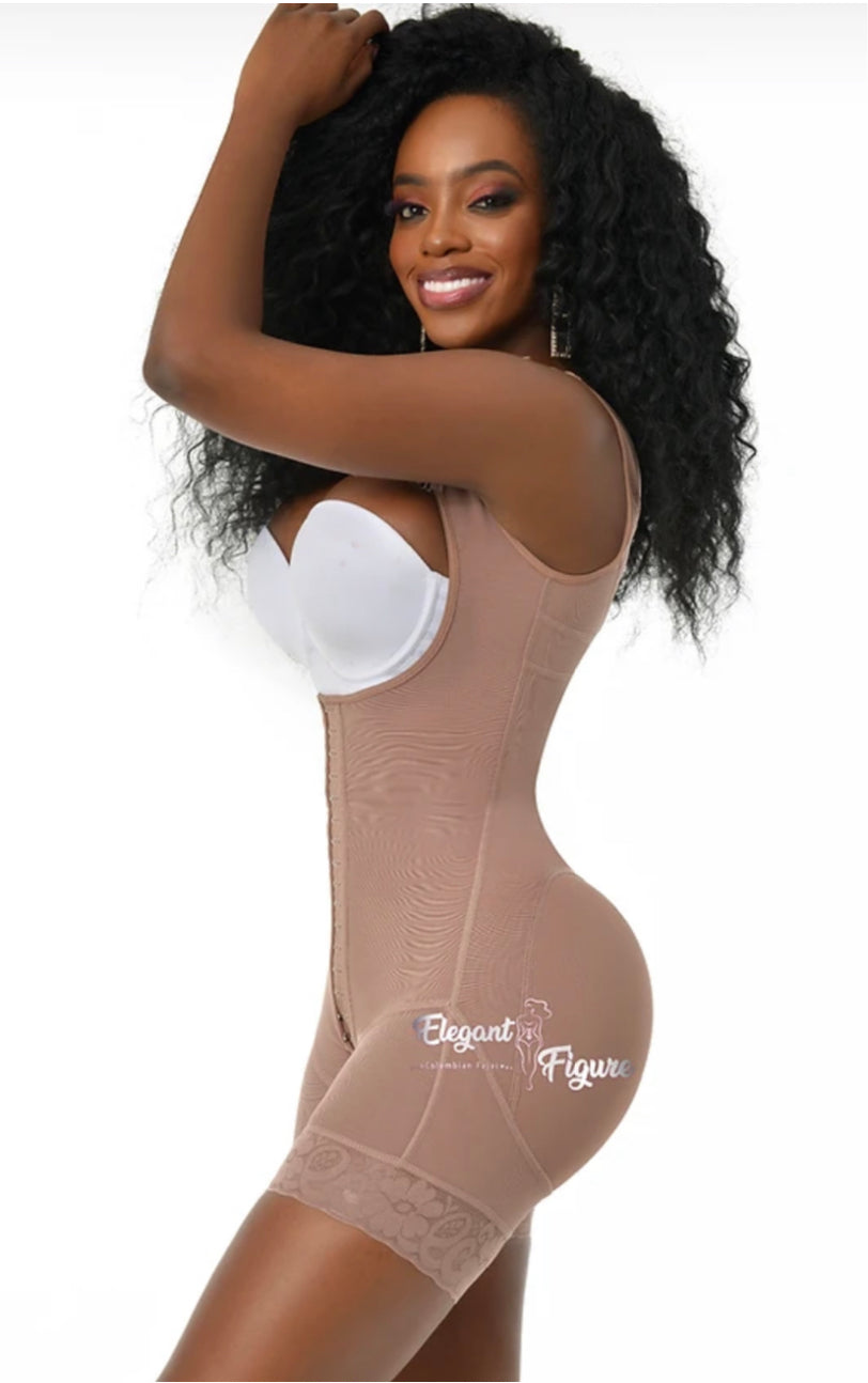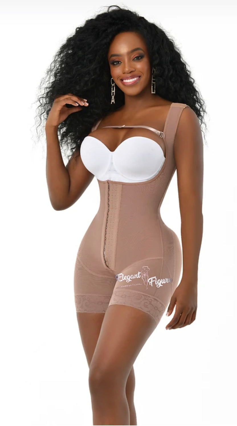 Faja de alta compresión diseñada para clientes con torso corto e ideal para recuperación post-abdominoplastia. Proporciona compresión enfocada en la parte superior del abdomen con cobertura completa en la espalda para soporte y moldeado. Cuenta con tirantes ajustables para un ajuste personalizado y efecto de levantamiento extremo de glúteos. Ayuda a reducir la inflamación durante la recuperación. Incluye tres filas de broches para ajuste de compresión, silicón en las piernas para evitar que se enrolle y cierre inferior para facilitar el acceso al baño. Recomendada para clientes con una diferencia de 8–10 pulgadas entre cintura y cadera. Algunas fajas no traen el dije. El dije no viene reforzado para que pueda retirarse fácilmente si se desea.
