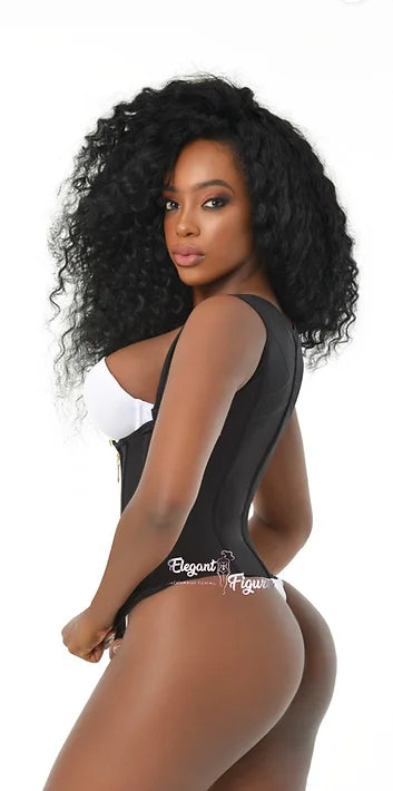 Chaleco de compresión extrema diseñado para un moldeo avanzado con cobertura total de la espalda. Cuenta con 13 varillas de acero para una estructura firme, dos capas de powernet. Una capa superior con cierre y banda elástica alrededor de la cintura para mayor curva y compresión localizada. La capa interna incluye tres filas de broches para un ajuste flexible. Forro de algodón para mayor comodidad. La espalda completa y los tirantes gruesos brindan mayor soporte y cobertura total. El estilo de los tirantes puede variar según el inventario; la clienta puede recibir los tirantes nuevos o la versión anterior. Él dije no viene reforzado para que pueda removerse fácilmente si se desea. Se recomienda subir una talla para clientas sin experiencia con fajas de compresión extrema.